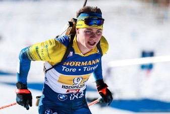 • Віталій Мандзин на третьому етапі використав один додатковий патрон і підняв команду на 6-те місце (+1:48).